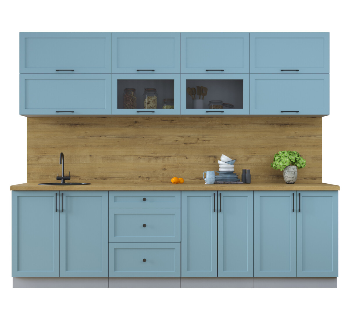 - Высота нижних шкафов: 850 мм