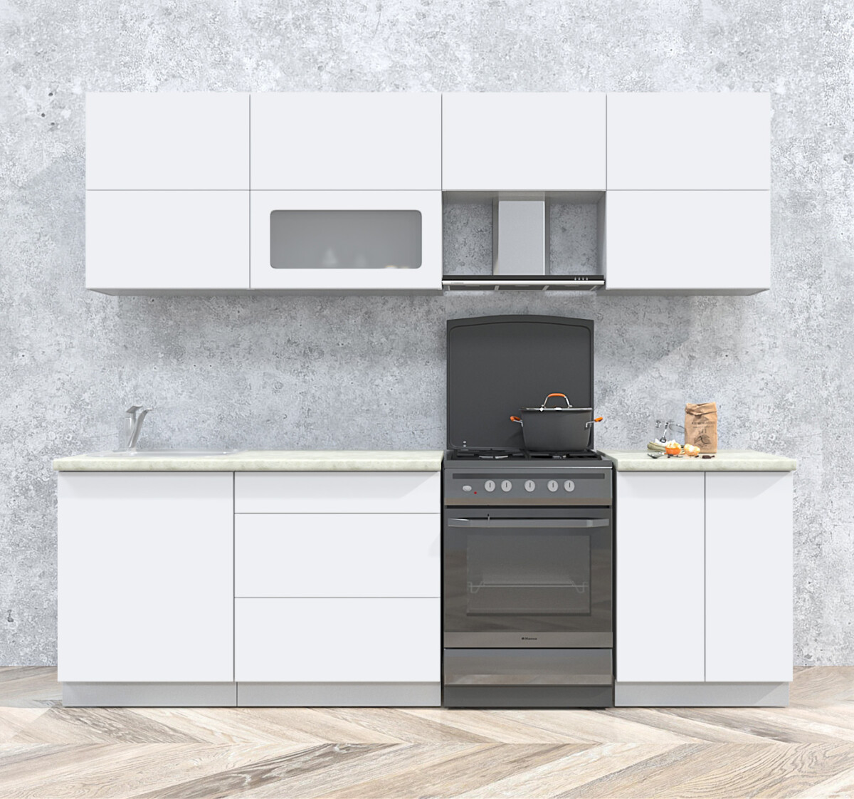 | Столешницы | Белый гранит, Дуб бунратти, Кастило темный, Малага, Опал светлый, Сосна бискайская, Травертин серый |