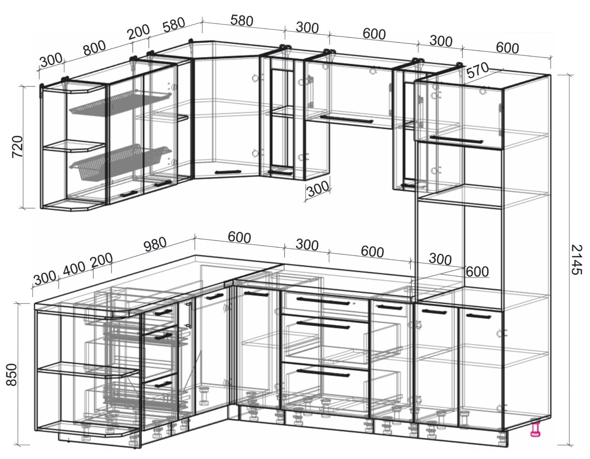 | Столешницы | Белый гранит, Дуб бунратти, Кастило темный, Малага, Опал светлый, Сосна бискайская, Травертин серый |