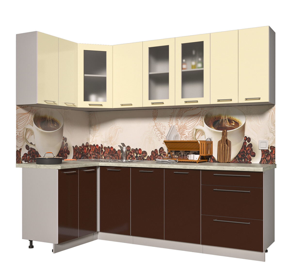 Угловая кухня Мила Пластик 1,2х2,4 м